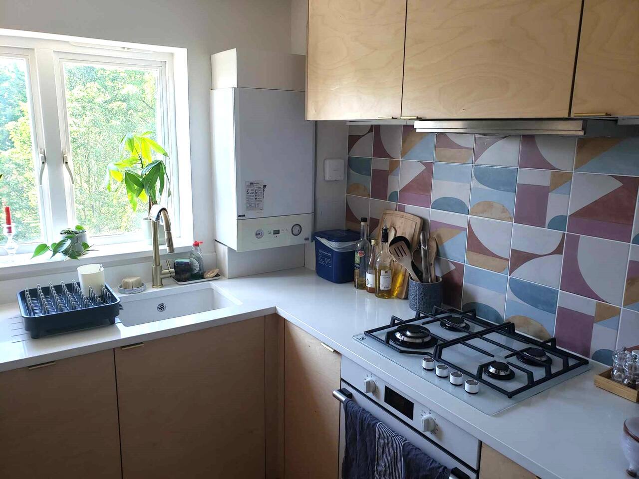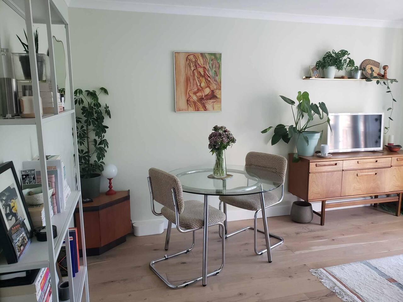 This is my personal home and I have taken great pride in decorating the space with things that bring me joy. I love living in this place, waking up with sunshine streaming in, being able to take a short walk to my favourite coffeeshop or gowing for a run in Victoria Park. I hope you enjoy my home as much as I do. It's a second floor flat with one bedroom, living room, separate kitchen and bathroom. My absolute favourite thing about it are the floor to ceiling south facing windows in the living area which make it super bright and airy. But everyday I'm also thankful for my serene and comfy bedroom which faces away from the street so is nice and quiet. And for my kitchen, which I've tried to make a colourful and cheery space to prepare tasty meals in. The flat is also a short walk away from some local gems, starting with Victoria Park, my absolute favourite! It's 4 minutes walk away and is the perfect place for a stroll or a jog, or just to sit at one of the two cafes to do some people watching. You've also got so many nice places right in Hackney Wick, including Bad Coffeeshop which is actually delicious, or Hackney Bridge for some food stalls (Bovine Burgers are the best smashed burgers you'll ever eat). I hope you love this place as much as I do!