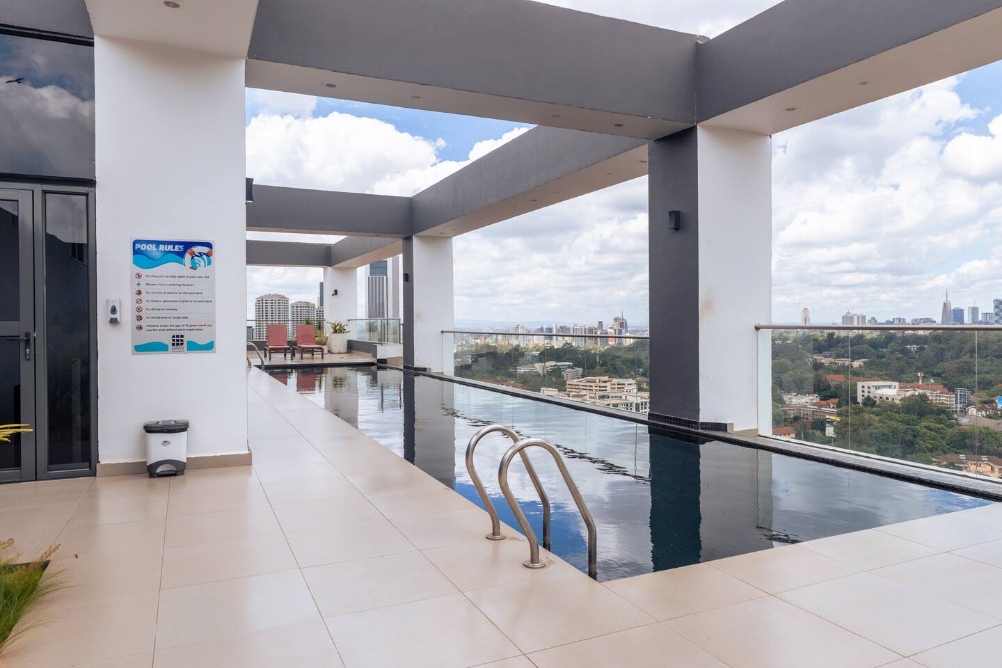 Welcome to your stylish urban retreat in the heart of Nairobi, Kenya. This beautifully designed 2-bedroom apartment offers the perfect blend of comfort, convenience, and city sophistication—ideal for business travelers, couples, or small families seeking a memorable stay. Comfortable Bedrooms & Hotel-Like Bathrooms Each bedroom is thoughtfully furnished with soft bedding, spacious wardrobes, and dedicated workspaces for productivity and relaxation. Enjoy en-suite bathrooms featuring rainfall showers, bidets, continuous hot water, and starter toiletries—creating a luxurious, hotel-style experience. Cozy Living & Dining Spaces Unwind in the inviting living area with a comfortable sofa and a dining table perfect for shared meals or casual evenings in. Whether you're working remotely or enjoying downtime, the space is designed to feel like home. Fully Equipped Kitchen for Easy Meals. Prepare meals with ease in the full kitchen, complete with a gas stove, fridge, microwave, mini fridge, blender, toaster, coffee maker, and all essential cookware. Wine glasses and a dining set make it easy to enjoy relaxed evenings or host a casual dinner. Rooftop Infinity Pool & On-Site Amenities Take in sweeping skyline views from the rooftop infinity pool—perfect for morning swims or sunset relaxation. The building also features an on-site bar, restaurant, and gym, offering everything you need without leaving the property. Smart Access & Free Parking Enjoy the convenience of smart lock entry and free parking, making your arrival and departure smooth and secure. Prime Location Near Nairobi’s Top Attractions Located just minutes from Nairobi National Museum, Uhuru Park, and vibrant local cafés, you’ll be close to culture, nature, and everyday essentials. Public transport, shops, and city attractions are easily accessible from this central location. Book your stay today and experience the best of Nairobi—comfort, culture, and convenience all in one place! ★☆ Nearby Guest Attractions: ☀ Snake Park: 8 min drive ☀ Karura forest: 9 min drive ☀ The Galton - Fenzi Memorial: 12 min drive ☀ The Nairobi Arboretum: 13 min drive ☀ SafariPark Thika Road: 18 min drive ☀ Ruaka Falls: 25 min drive ★☆ Nearby Restaurants: ☀ Fogo Gaucho Westlands: 6 min walk ☀ Urban Eatery: 8 min walk ☀ INTI - A Nikkei Experience: 8 min walk ☀ Nana Swahili Restaurant: 8 min drive ☀ Romo House Restaurant & Lounge - Westlands: 8 min drive ☀ Region Restaurant & Bar: 8 min drive ☀ Nairobi Street Kitchen: 9 min drive ☀ Jenga Jungle Restaurant: 9 min drive ★☆ Nearby Hospitals: ☀ Dr Rasik Kantaria Jalaram Medical Services: 8 min drive ☀ MP Shah Hospital: 9 min drive ★☆ Nearby Transportation: Airport ☀ Nairobi International Airport: 19 min drive BUS STOP ☀ Consolata: 3 min walk