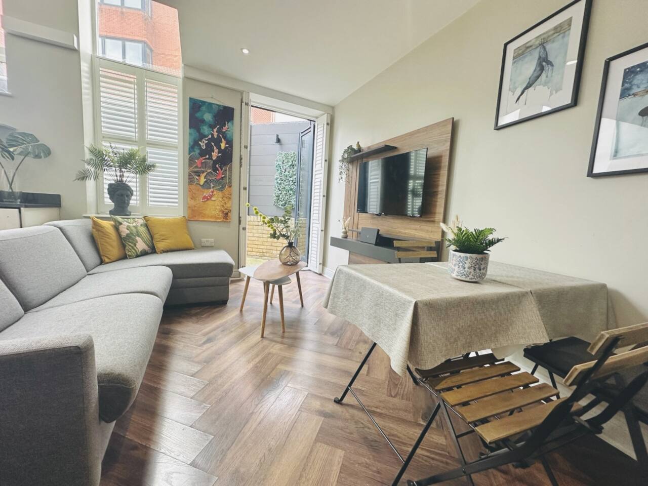 Welcome To Your Chic London Escape In The Heart Of Putney Elegant 2-bedroom, 2.5-bath flat with a private patio, full kitchen, Wi-Fi, and stylish interiors. Located in the peaceful yet central neighborhood of Putney, this flat comfortably accommodates up to six guests, perfect for families, business travelers, or sightseeing groups. With easy access to shops, scenic riverside paths, Wimbledon, and central London, it offers the best of city convenience and residential charm. Step Into Spacious Comfort Inside, you’ll find two beautifully furnished en-suite bedrooms with three cozy beds, generous storage, and fresh linens. The flat also includes two full bathrooms and a half bath, ensuring privacy and ease for groups. Soft towels, extra pillows, and thoughtful touches throughout create a homely, hotel-like experience. Relax In The Stylish Living Space The living room features tasteful décor, a flat-screen TV, and a serene atmosphere perfect for relaxing after a day in the city. Whether you’re curling up with a book or enjoying an evening in, this space offers a welcoming spot to unwind. The adjoining dining area doubles as a social hub for meals, board games, or trip planning. Cook And Dine With Ease Enjoy preparing meals in the fully equipped kitchen, complete with a gas stove, oven, microwave, dishwasher, refrigerator, espresso machine, and kettle. With dishes, wine glasses, and cookware included, you can choose to dine in or explore nearby eateries. Thoughtful Amenities And Workspace Stay productive with fast Wi-Fi and workspaces in both bedrooms, ideal for business travelers or digital nomads. The home also includes a washer, dryer, portable fans, central heating, and essential toiletries for your convenience. Outdoor Patio For Fresh Air Step outside to your own private patio, a peaceful space for morning tea or evening wine. It’s a perfect extension of the indoor space, offering moments of calm in one of London’s most desirable residential areas. Explore The Neighborhood Situated within walking distance of shops, coffee spots, pubs, and riverside trails, the flat is ideally located for discovering southwest London. You’re just 10 minutes by car from Wimbledon’s All England Lawn Tennis Club and close to excellent transport options including train, bus, and Tube lines for easy access to central London. Flexible Parking And Easy Access If you’re arriving by car, parking is available through the JustPark or Ringo app for flexible, paid options. Getting around is a breeze thanks to nearby public transport links. The Perfect Balance Of Comfort And Connection Whether you’re visiting for leisure or work, this elegant Putney flat offers a comfortable, stylish, and connected stay in one of London’s most charming neighborhoods.